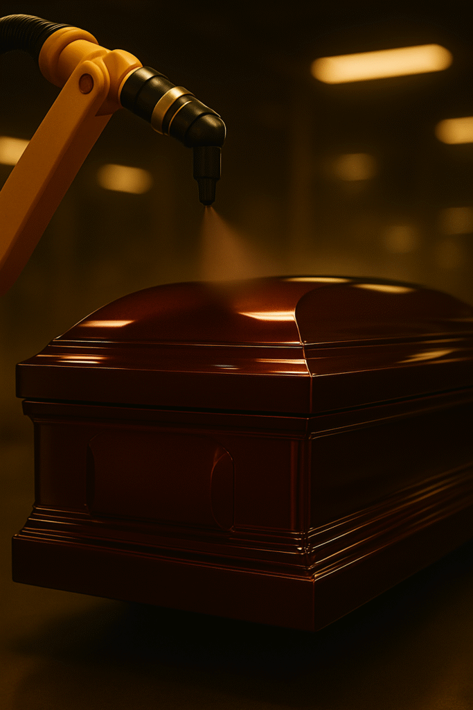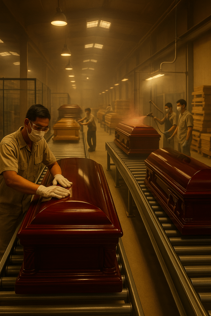 Trusted by families, Recognised by funeral homes worldwide. Each casket is crafted with finest materials, finished by skilled artisans, and coated with premium automotive paint for lasting beauty. Our large-scale factory combines advanced automation with meticulous handwork — ensuring quality, dignity, and trust in every piece.